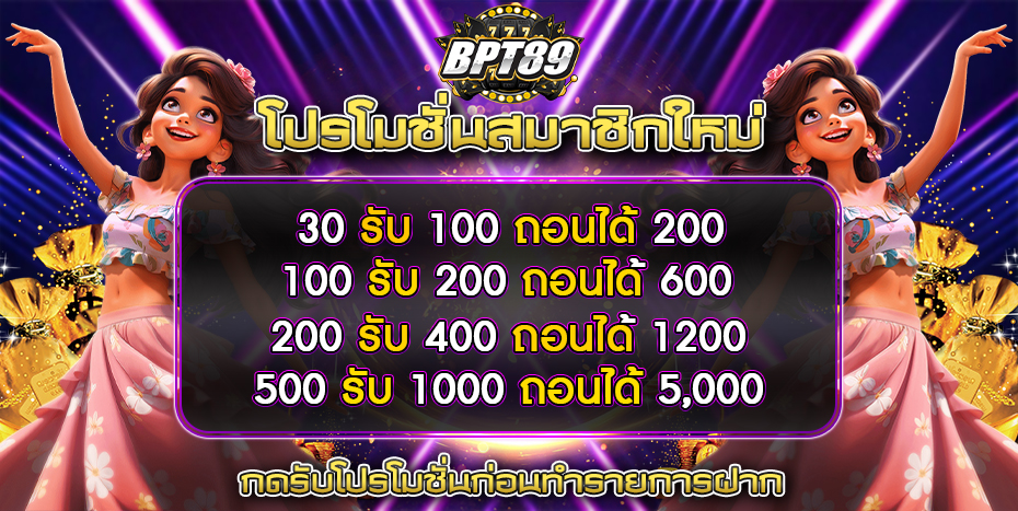 เมื่อคุณสมัครสมาชิกใหม่กับ bpt89 คุณจะได้รับโบนัสพิเศษทันทีเมื่อทำการฝากเงินครั้งแรก โดยยอดฝากขั้นต่ำเพียง 100 บาทเท่านั้น เว็บไซต์จะเพิ่มเครดิตให้คุณตามจำนวนเงินที่ฝากสูงสุดถึง 100% ยกตัวอย่างเช่น ถ้าคุณฝากเงิน 1,000 บาท คุณจะได้รับโบนัสเพิ่มอีก 1,000 บาท ทำให้คุณมีเงินในบัญชีถึง 2,000 บาทเลยทีเดียว
