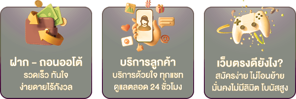 ตอบ : - ฝาก-ถอนอัตโนมัติ 24 ชั่วโมง - รองรับการเล่นผ่านมือถือทุกระบบ - มีโปรโมชั่นและกิจกรรมให้ร่วมสนุกตลอด - ระบบความปลอดภัยมาตรฐานสากล - บริการลูกค้าตลอด 24 ชั่วโมง